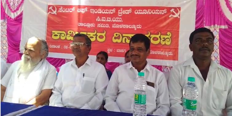 ಮೊಳಕಾಲ್ಮುರು: ಪಟ್ಟಣದ ಖಾಸಗಿ ಬಸ್ ನಿಲ್ದಾಣದಲ್ಲಿ ಸೆಂಟರ್ ಆಫ್ ಇಂಡಿಯನ್ ಟ್ರೇಡ್ ಯೂನಿಯನ್ ಸಿ ಐ ಟಿ ಯು ತಾಲೂಕು ಸಮಿತಿ ವತಿಯಿಂದ ಕಾರ್ಮಿಕ ದಿನಾಚರಣೆಯನ್ನು ಬಹಳ ಅರ್ಥಪೂರ್ಣವಾಗಿ ಆಚರಿಸಲಾಯಿತು.