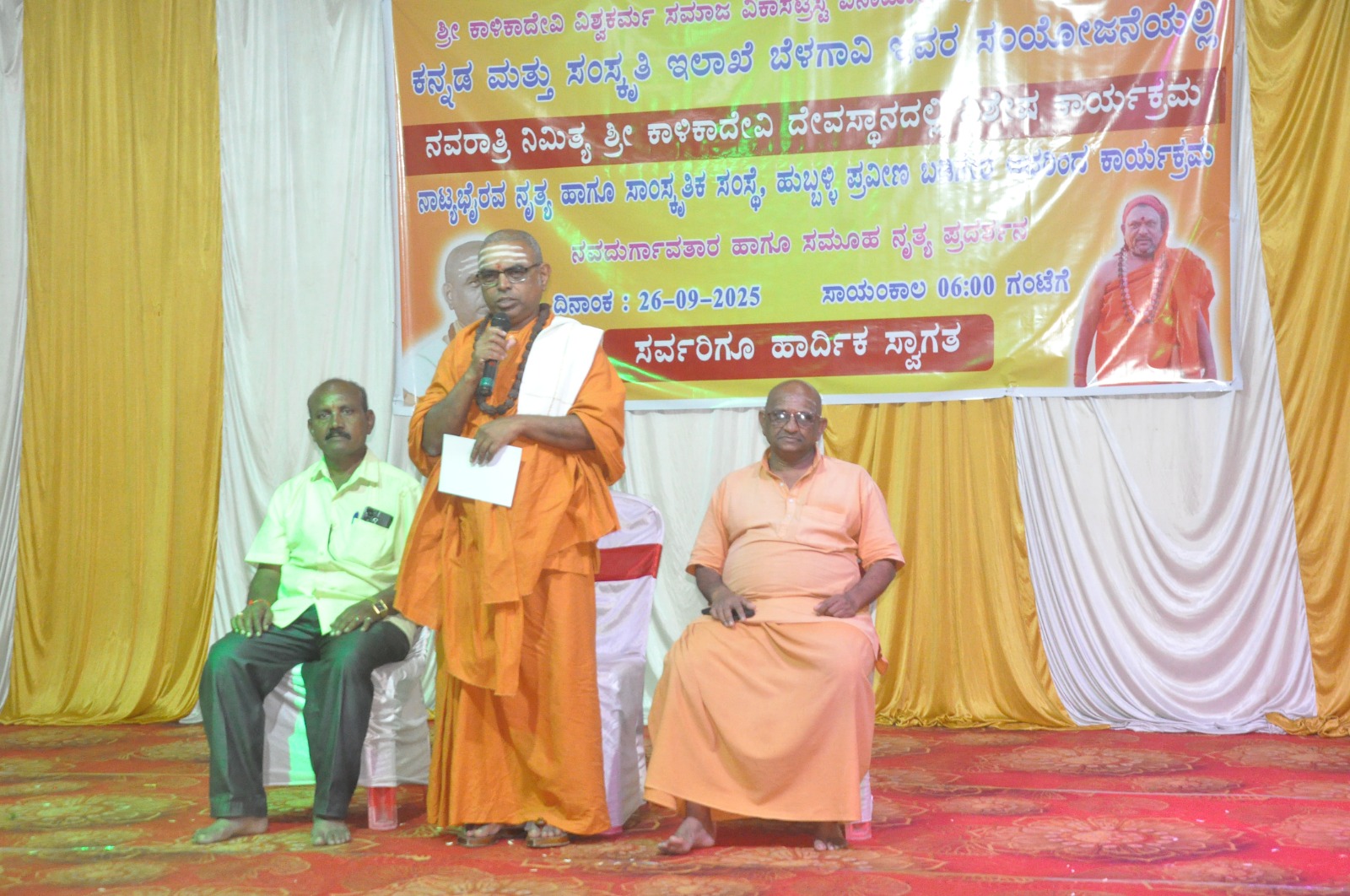 ಅವರು ದಿ 26ರಂದು ತಾಲ್ಲೂಕಿನ ಐನಾಪುರ ಪಟ್ಟಣದಲ್ಲಿ ಕನ್ನಡ ಸಂಸ್ಕೃತ ಇಲಾಖೆ ಬೆಳಗಾವಿ ಹಾಗೂ ಶ್ರೀ ಕಾಳಿಕಾ ದೇವಿ ವಿಶ್ವಕರ್ಮ ಸಮಾಜ ಮತ್ತು ವಿಶ್ವಕರ್ಮ ವೇದಮಾತಾ ಮಹಿಳಾ ಸಂಘದವರ ಸಹಯೋಗದಲ್ಲಿ ನಡೆದ ನವರಾತ್ರಿ ಪ್ರಯುಕ್ತ, ನವದುರ್ಗಾವತಾರ ನಾಟ್ಯ ಭೈರವ ನೃತ್ಯ ಪ್ರದರ್ಶನ ಕಾರ್ಯಕ್ರಮವನ್ನು ದ್ವೀಪ ಪ್ರಜ್ವಲಿಸಿ ಹಾಗೂ ದಿವ್ಯ ಸಾನಿದ್ಯ ವಹಿಸಿ ಆರ್ಶಿವಚನ ನಿಡುತ್ತಾ ನಮ್ಮ ಭಾರತ ದೇಶದಲ್ಲಿ ದೇವಾನು ದೇವತೆಗಳನ್ನು ಪೂಜಿಸಿದ ದೇಶ ನಮ್ಮದು ಮಂಬರುವ ಹಬ್ಬಗಳು ಮನುಷ್ಯನಿಗೆ ಸಂಸ್ಕಾರ,ಒಳ್ಳಯವರಾಗಲು ಹಬ್ಬ ಹರಿ ದಿನ ಗಳಿವೆ ಎಂದ ಅವರು ಭಗವಂತನಿಗೆ ಪದಾರ್ಥಗಳನ್ನು ಮೀಸಲಿಡದೆ ಮನಸ್ಸು ಮೀಸಲಿಡಬೇಕು ಮನಸ್ಸನ್ನು ಕೆಟ್ಟದಕ್ಕೆ ಹರಿಬಿಡದೆ ದೇವರಲಿ ಮನಸ್ಸನ್ನು ಲೀನಮಾಡಿದರೆ ಮನೆ,ಮನಸ್ಸು ಮನೋಭಾವ ತರುವುದೆ ಧಾರ್ಮಿಕ ತೆ ಎಂದರು.