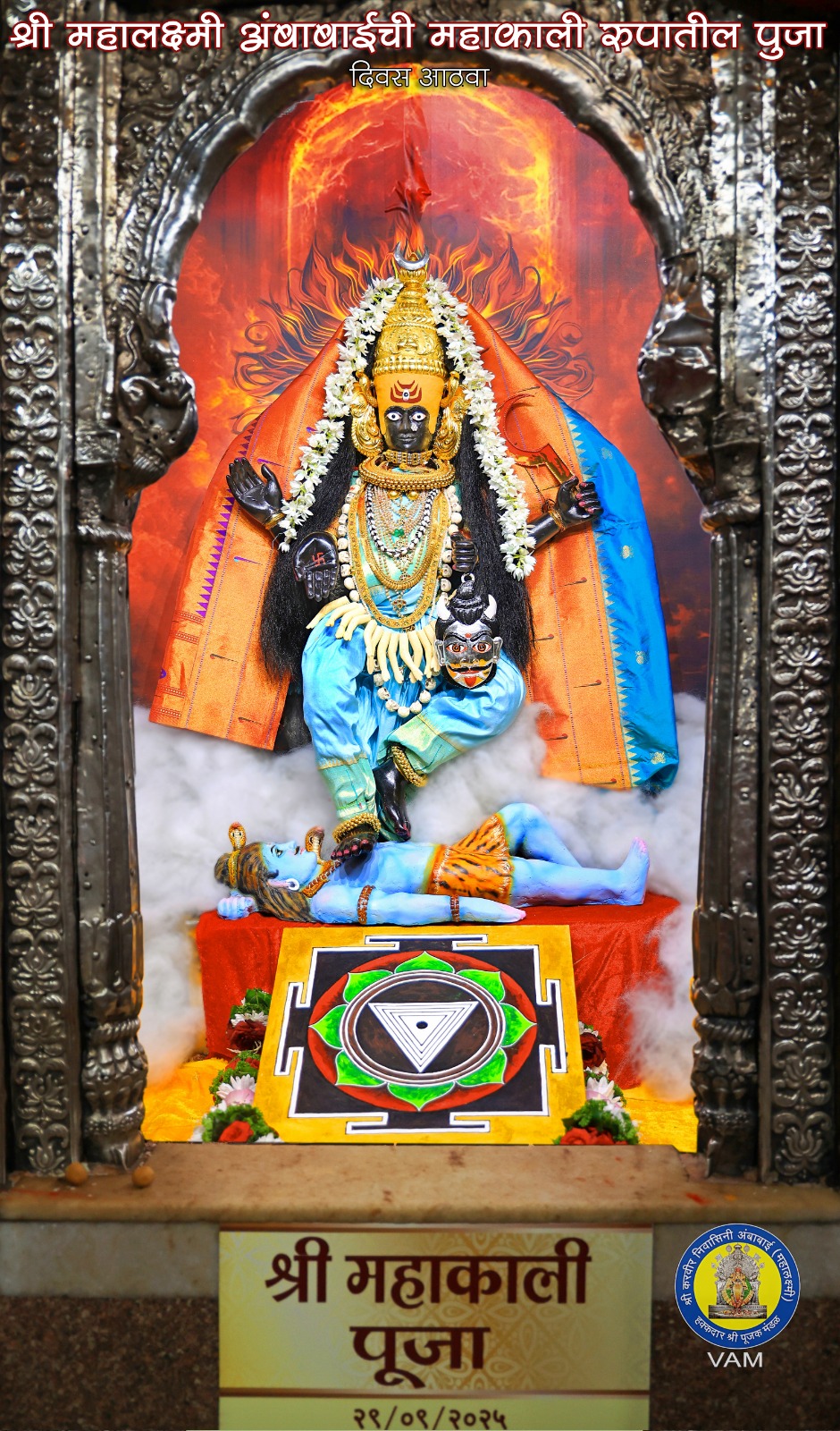 ಮಹಾರಾಷ್ಟ್ರ:   ವಿವಿಧ ರಾಜ್ಯಗಳಿಂದ ಇದುವರೆಗೆ 2 ಲಕ್ಷಕ್ಕೂ ಅಧಿಕ ಭಕ್ತರಿಂದ ದರ್ಶನ. ಆಂಕರಿಂಗ್=ಹೌದು ಮೂರುವರೆ ಶಕ್ತಿ ಪೀಠಗಳಲ್ಲಿಯ ಒಂದಾದ ಕೊಲ್ಲಾಪುರದ ಮಹಾಲಕ್ಷ್ಮಿಗೆ ಶಾರದೆಯ ನವರಾತ್ರಿ ಉತ್ಸವದ 7ನೇ ದಿನ ಸೋಮವಾರ ಸಂಜೆ 7 ಗಂಟೆಗೆ ಮಹಾಲಕ್ಮಿ ಗೆ ಶ್ರೀ ಮಹಾಕಾಳಿ ರೂಪದಲ್ಲಿ ವಿಶೇಷ ಅಲಂಕಾರ ಪೂಜೆ ನಡೆಯಿತು.