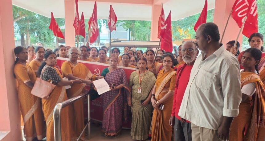 ಪ್ರತಿಭಟನೆ ನಂತರ ರಾಜ್ಯ ಅಂಗನವಾಡಿ ಕಾರ್ಯಕರ್ತರ ಮತ್ತು ಸಹಾಯಕಿಯರ ಫೆಡರೇಷನ್ ತಾಲ್ಲೂಕು ಘಟಕ ನೌಕರರ ಸಂಘ (ಸಿಐಟಿಯು) ಕಾರ್ಯಕರ್ತರು, ಗ್ರೇಡ್ 2 ತಹಸೀಲ್ದಾರ್ ಸುಮತಿ ಅವರಿಗೆ ಮನವಿ ಸಲ್ಲಿಸಿದರು. ಪ್ರತಿಭಟನೆಯಲ್ಲಿ ಸಂಘದ ಅಧ್ಯಕ್ಷೆ ನೇತ್ರಾವತಿ, ಕಾರ್ಯದರ್ಶಿ ದಾನಮ್ಮ, ರಂಗಮ್ಮ, ಶೋಭಾ ಸೇರಿದಂತೆ ಹಲವರು ಭಾಗವಹಿಸಿದ್ದರು.
