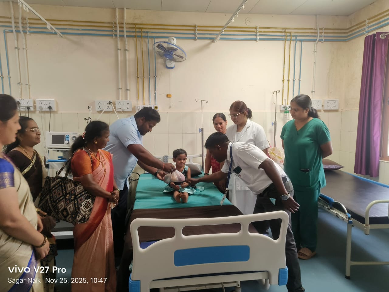 ಹುಬ್ಬಳಿ : ಶ್ರೀ ಕ್ಷೇತ್ರ ಧರ್ಮಸ್ಥಳ ಗ್ರಾಮ ಅಭಿವೃದ್ಧಿ ಯೋಜನೆಯ ಅಧ್ಯಕ್ಷರು ಹಾಗೂ ಧರ್ಮಸ್ಥಳ ಧರ್ಮಾಧಿಕಾರಿಗಳಾದ ಪೂಜ್ಯ ಶ್ರೀ ವೀರೇಂದ್ರ ಹೆಗಡೆಯವರ ಹುಟ್ಟು ಹಬ್ಬದ ದಿನಾಚರಣೆಯ ಅಂಗವಾಗಿ ಜೋಯಿಡಾ ತಾಲೂಕು ಆಸ್ಪತ್ರೆಯಲ್ಲಿ ಒಳ ರೋಗಿಗಳಿಗೆ ಹಣ್ಣು ಹಂಪಲ ವಿತರಣೆ ಮಾಡಲಾಯಿತು ಈ ಸಂದರ್ಭದಲ್ಲಿ ಜೋಯಿಡಾ ತಾಲೂಕು ಸರ್ಕಾರಿ ಆಸ್ಪತ್ರೆಯ ಆಡಳಿತ ವೈದ್ಯಾಧಿಕಾರಿಗಳಾದ ಡಾ: ವಿಜಯ್ ಕುಮಾರ್ ಕೊಚ್ಚರಗಿ ದಾಂಡೇಲಿ ತಾಲೂಕು ಯೋಜನಾಧಿಕಾರಿಗಳಾದ ಶ್ರೀ ಭೋಜ ಒಕ್ಕೂಟ ಉಪಾಧ್ಯಕ್ಷ ಸಾಗರ ನಾಯಕ್ ಹಾಗೂ ಶಾಂತಾ ಹರಿಜನ್ ಅಕ್ಷತಾ ಮಂಡಲ್ಕರ್ ಲಕ್ಷ್ಮಿ ಹರಿಜನ್ ಹಾಗೂ ಜೋಯಿಡಾ ವಲಯದ ಮೇಲ್ವಿಚಾರಕರಾದ ಪ್ರವೀಣ ತಿಮ್ಮಣ್ಣವರ್. ದೇವಾನಂದ್ ಮೀರಾಶಿ ಹಾಗೂ ಸೇವಾ ಪ್ರತಿನಿಧಿ ದ್ರಾಕ್ಷಾಯಿಣಿ ನಾಯಕ್ ಹಾಗೂ ಇತರ ಸಂಘದ ಸದಸ್ಯರು ಆಸ್ಪತ್ರೆ ಸಿಬ್ಬಂದಿಗಳು ಉಪಸ್ಥಿತರಿದ್ದರು.