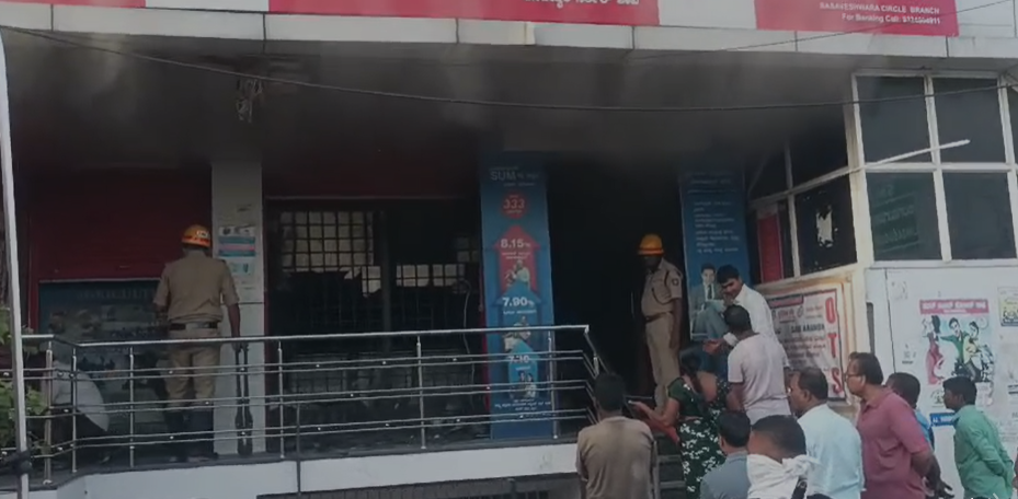 ತಹಬದಿಗೆ ಬಾರದ ಅಗ್ನಿ, ಬೆಂಕಿಯ ಕೆನ್ನಾಲಿಗೆ ಧಗಧಗಿಸಿ ಹೊತ್ತಿ ಉರಿಯುತ್ತಿರೋ ಬ್ಯಾಂಕ್