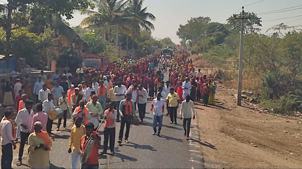 ಚಡಚಣ : ಸಮೀಪದ ಲೋಣಿ ಗ್ರಾಮದಲ್ಲಿ ಸಿದ್ದೇಶ್ವರ ಮೂರ್ತಿಯನ್ನು ಜಮಖಂಡಿ ತಾಲೂಕಿನ ಹನಗಂಡಿ ಗ್ರಾಮದಿಂದ ಲೋಣಿ ಬಿ ಕೆ ಗ್ರಾಮದವರೆಗೆ ಶಿವನಿಗೆ ಪ್ರಿಯವಾದ ನಂದಿ ಅಂದರೆ ಎತ್ತಿನ ಗಾಡಿಗಳಲ್ಲಿ ಪದಯಾತ್ರೆಯ ಮೂಲಕ ನೂತನ ಮೂರ್ತಿಗಳನ್ನು ತಂದು ಗ್ರಾಮದ ಮುಖ್ಯ ರಸ್ತೆಯಲ್ಲಿ ಸಾವಿರಾರು ಕುಂಭ ಹೊತ್ತ ಸುಮಂಗಲೆಯರು ಮತ್ತು ವಾದ್ಯ ವೈಭವಗಳೊಂದಿಗೆ ಗ್ರಾಮಕ್ಕೆ ಸ್ವಾಗತಿಸಿ.