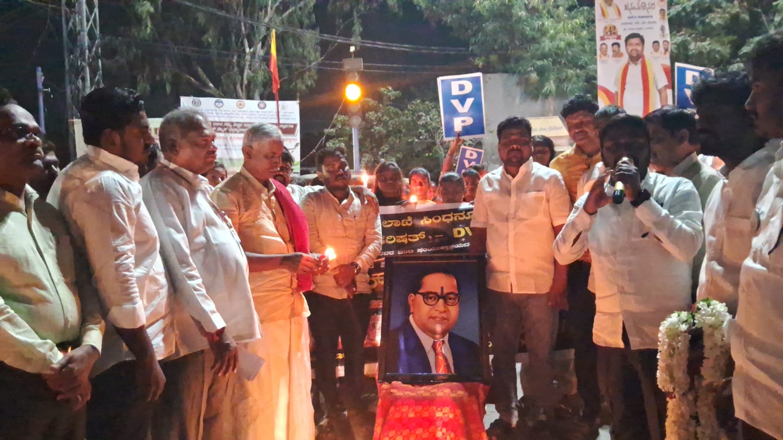 ಮಹಾತ್ಮ ಗಾಂಧೀಜಿ ವೃತ್ತದ ವರೆಗೆ ಸಹಸ್ರ ಸಂಖ್ಯೆಯಲ್ಲಿ ವಿದ್ಯಾರ್ಥಿಗಳು, ದಲಿತ ವಿದ್ಯಾರ್ಥಿ ಪರಿಷತ್ ಪದಾಧಿಕಾರಿಗಳು, ವಿವಿಧ ಸಂಘಟನೆಯ ಮುಖಂಡರು ಹಾಗೂ ವಿವಿಧ ಇಲಾಖೆ ಅಧಿಕಾರಿಗಳು ಕ್ಯಾಂಡಿಲ್ ಹಿಡಿದು ಬೃಹತ್ ಕಾಲ್ನಡಿಗೆ ಜಾಥಾದ ಮುಖಾಂತರ ಮಹಾತ್ಮ ಗಾಂಧಿ ವೃತದಲ್ಲಿ ಡಾ. ಬಾಬಾ ಸಾಹೇಬ್ ಅಂಬೇಡ್ಕರ್ ಅವರ ಭಾವಚಿತ್ರಕ್ಕೆ ಮಾಲಾರ್ಪಣೆ ಮಾಡಿ ಪುಷ್ಪಾರ್ಚನೆ ಸಲ್ಲಿಸಿ ನುಡಿ ನಮನ ಸಲ್ಲಿಸಲಾಯಿತು.
