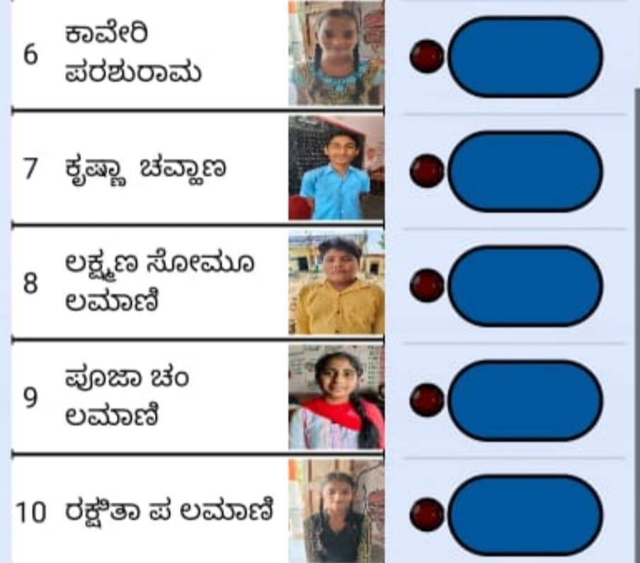 3ರಿಂದ 8ನೇ ವರ್ಗದ ವಿದ್ಯಾರ್ಥಿಗಳು ವಿದ್ಯಾರ್ಥಿನಿಯರು ಸರದಿ ಸಾಲಿನಲ್ಲಿ ನಿಂತು , ಹುರುಪಿನಿಂದ ಮತದಾನ ಮಾಡಿದರು.