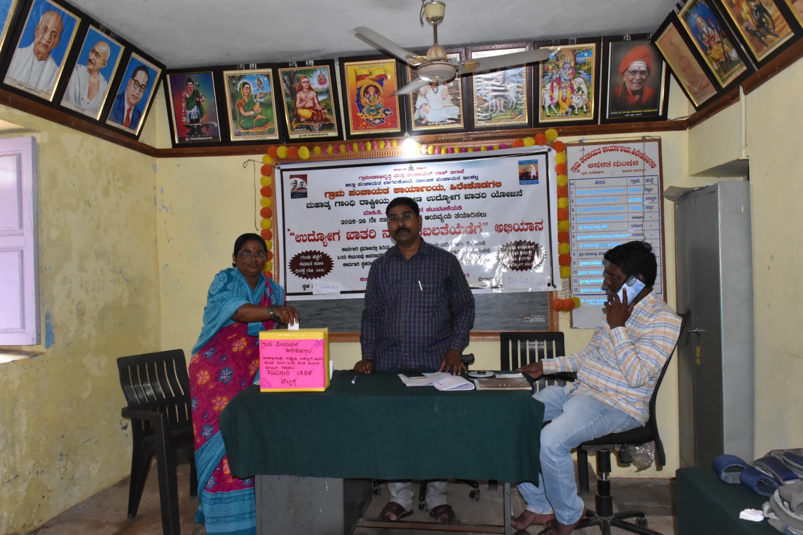 * ಗ್ರಾಮ ಪಂಚಾಯತಿಯಲ್ಲಿ ಕಾಮಗಾರಿ ಬೇಡಿಕೆ ಪೆಟ್ಟಿಗೆ ಇರಿಸಿ ಪೆಟ್ಟಿಗೆಯಲ್ಲಿ ಕಾಮಗಾರಿ ಅವಶ್ಯಕತೆ ಇರುವ ಫಲಾನುಭವಿಗಳಿಂದ ವಯಕ್ತಿಕ ಕಾಮಗಾರಿ ಬೇಡಿಕೆ ಸಲ್ಲಿಸಲಾಯಿತು.* ನರೇಗಾ ಕಡತ ಹಾಗೂ 7ದಾಖಲಾತಿಗಳನ್ನು ಪರಿಶೀಲನೆ ಮಾಡಿ ನವೀಕರಿಸಲು ತಿಳಿಸಲಾಯಿತು.* ಸ್ವ ಸಹಾಯ ಸಂಘದ ಸದಸ್ಯರಿಂದ form-6 ರಲ್ಲಿ ಕೆಲಸಕ್ಕಾಗಿ ಅರ್ಜಿ ಸ್ವೀಕರಿಸಲಾಯಿತು, ಸದರಿ ಸಂದರ್ಭದಲ್ಲಿ ಪಂಚಾಯತ ಅಭಿವೃದ್ಧಿ ಅಧಿಕಾರಿಗಳ ಉಪಸ್ಥಿತಿಯಲ್ಲಿ TC.TIEC, TAE BFT, GKM ಗ್ರಾಮ ಪಂಚಾಯತ ಸಿಬ್ಬಂದಿ, ಹಾಜರಿದ್ದರು ಸರ್.ತಾಲೂಕ ಐಇಸಿ ಸಂಯೋಜಕರು ಇಳಕಲ್