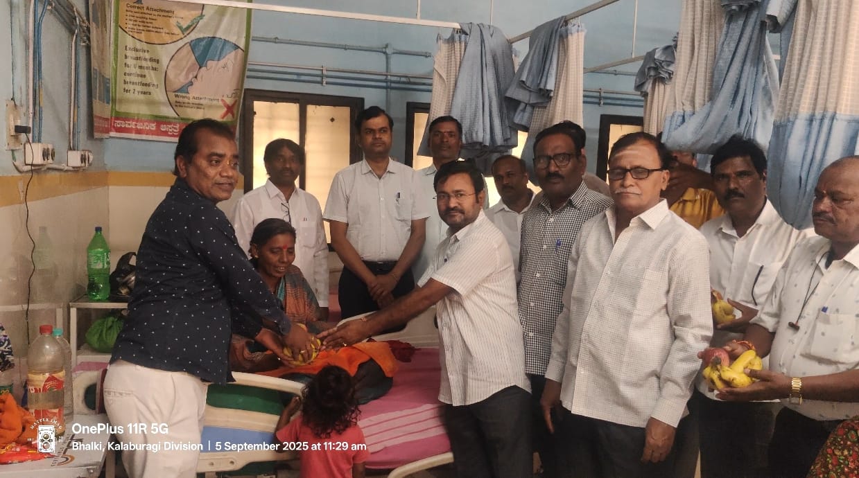 ಭಾಲ್ಕಿ:ಶಿಕ್ಷಕರ ದಿನಾಚರಣೆಯ ಅಂಗವಾಗಿ ಕಲ್ಯಾಣ ಕರ್ನಾಟಕದ ಎಲ್ಲ ಜಿಲ್ಲೆಗಳನ್ನು ಒಳಗೊಂಡ ಕಲ್ಯಾಣ ಕರ್ನಾಟಕ ಶಿಕ್ಷಕರ ಸಂಘದ ಸಂಸ್ಥಾಪಕ ಅಧ್ಯಕ್ಷರಾದ ಬಾಲಾಜಿ ಬೈರಾಗಿ ಅವರ ಅಧ್ಯಕ್ಷತೆಯಲ್ಲಿ ಭಾಲ್ಕಿ ನಗರದ ಸರ್ಕಾರಿ ಸಾರ್ವಜನಿಕ ಆಸ್ಪತ್ರೆಯಲ್ಲಿ ಹೃದಯಸ್ಪರ್ಶಿ ಕಾರ್ಯಕ್ರಮ ಜರುಗಿತು.