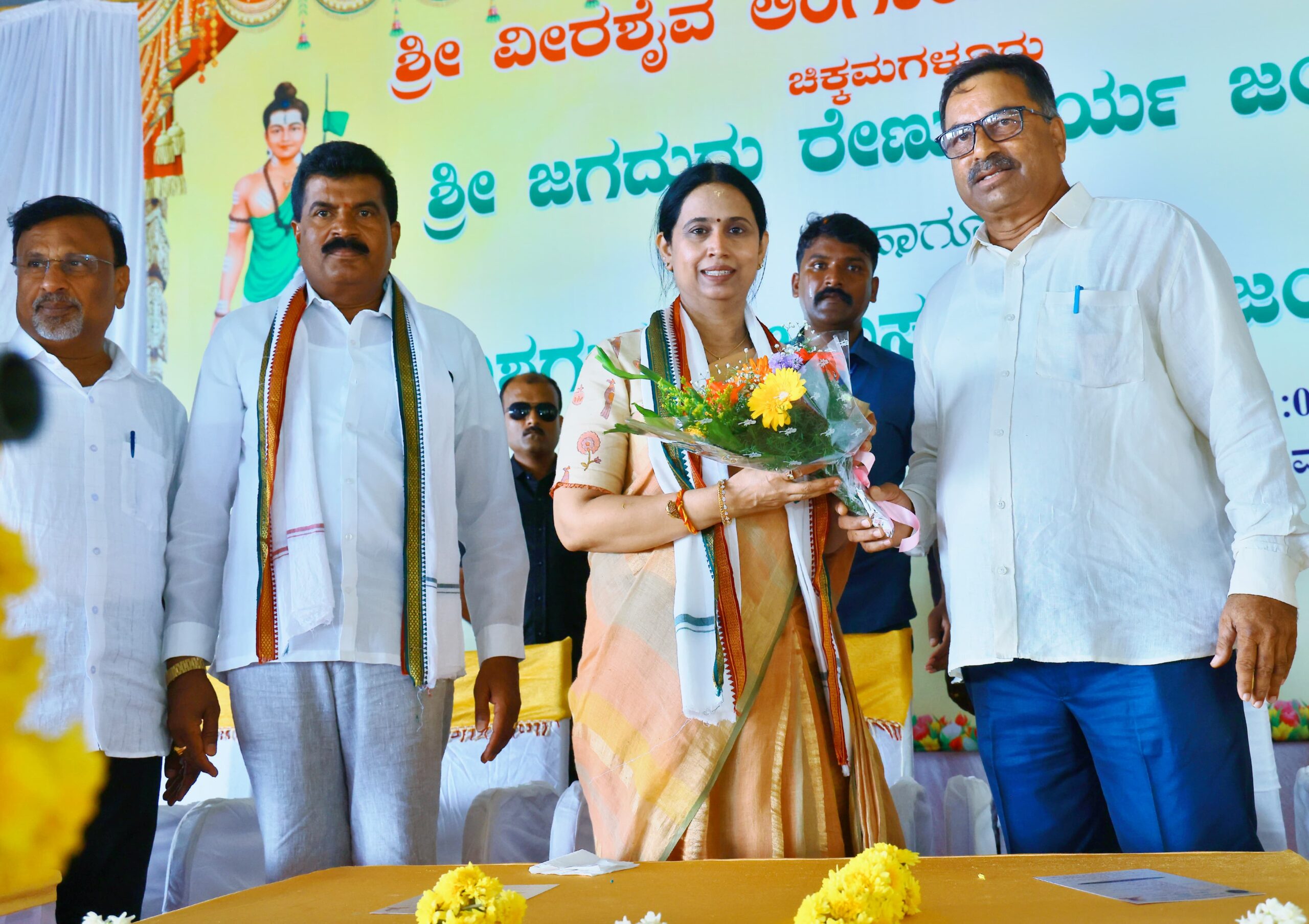 ಚಿಕ್ಕಮಗಳೂರಿನ ಶ್ರೀ ವೀರಶೈವ ಲಿಂಗಾಯತ ಸಮುದಾಯ ಭವನದಲ್ಲಿ ಶನಿವಾರ ನಡೆದ ಶ್ರೀ ಜಗದ್ಗುರು ರೇಣುಕಾಚಾರ್ಯ ಜಯಂತಿ ಹಾಗೂ ವಿಶ್ವ ಗುರು ಬಸವೇಶ್ವರರ ಜಯಂತಿ ಕಾರ್ಯಕ್ರಮದಲ್ಲಿ ಮಾತನಾಡಿದ ಸಚಿವರು, ಸಮಾಜದ ಮಗಳಾಗಿ ಕಾರ್ಯಕ್ರಮಕ್ಕೆ ಬಂದಿರುವೆ. ಬೇರೆ ಸಮಾಜದವರ ಜೊತೆಗೆ ಹಂಚಿಕೊಂಡು ತಿನ್ನುವ ಸಮಾಜ, ಎಲ್ಲರನ್ನೂ ಒಟ್ಟಿಗೆ ಕರೆದುಕೊಂಡು ಹೋಗುವ ಸಮಾಜ ನಮ್ಮದು ಎಂದರು.