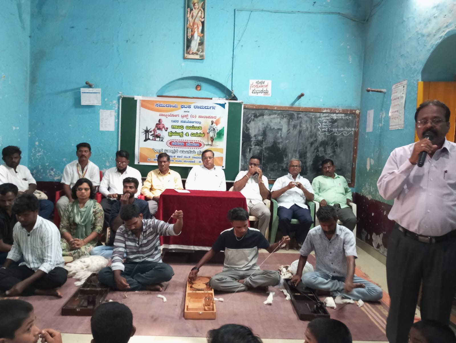 ಅತಿಥಿಗಳಾದ ರಾಜಶೇಖರ ಶೆಲವಡಿ ಮಾತನಾಡುತ್ತ ಗುಡಿಕೈಗಾರಿಕೆ ಗ್ರಾಮೀಣಾಭಿವೃದ್ಧಿ ಸರ್ವೋದಯ ಸಮನ್ವಯ ತತ್ವಗಳು ಇಂದು ನಮಗೆ ದಾರಿದೀಪವಾಗಿದೆ ಯಾವುದೇ ಹಿಂಸೆ ಇಲ್ಲದೆ ಬ್ರಿಟಿಷರ ವಿರುದ್ಧ ಹೋರಾಡಿ ಶಾಂತಿಯಿಂದ ಸ್ವಾತಂತ್ರ್ಯ ಗಳಿಸಿಕೊಟ್ಟ ಗಾಂಧೀಜಿಯವರು ಸರ್ವ ಧರ್ಮಗಳ ಐಕ್ಯತೆಯ ಪ್ರತೀಕವಾಗಿರುವ ಮಹಾತ್ಮರು ಎಂದು ಹೇಳಿದರು.