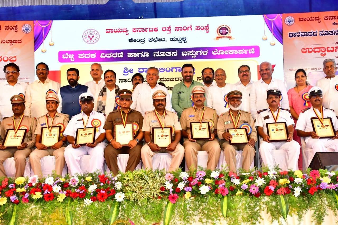 ಧಾರವಾಡ: ಹುಬ್ಬಳ್ಳಿಯ ನವೀಕೃತ ಬಸ್ ನಿಲ್ದಾಣದ ಉದ್ಘಾಟನೆ ಹಾಗೂ ಅಪಘಾತ/ಅಪರಾಧ ರಹಿತ ಸೇವೆ ಸಲ್ಲಿಸಿದ ಸಂಸ್ಥೆಯ ಚಾಲನಾ ಸಿಬ್ಬಂದಿಗೆ ‘ಬೆಳ್ಳಿ ಪದಕ’ ವಿತರಣಾ ಸಮಾರಂಭದಲ್ಲಿ ಸಾರಿಗೆ ಸಚಿವರಾದ ರಾಮಲಿಂಗರೆಡ್ಡಿ ಹಾಗೂ ಕಾರ್ಮಿಕ ಸಚಿವರಾದ ಸಂತೋಷ್ ಲಾಡ್ ಉದ್ಘಾಟನೆ ಮಾಡಿದರು.