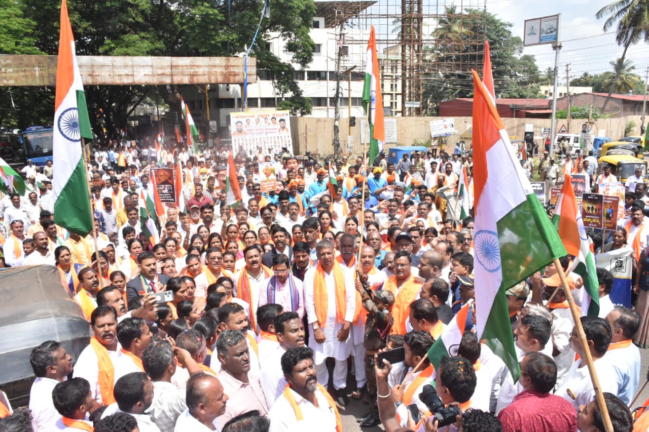 ಹುಬ್ಬಳ್ಳಿ: ಭಾರತೀಯ ಸೇನೆ ನಡೆಸಿದ ’ಆಪರೇಷನ್ ಸಿಂಧೂರ್’ ಯಶಸ್ವಿಯಾದ ಹಿನ್ನೆಲೆಯಲ್ಲಿ ಭಾರತೀಯ ಜನತಾ ಪಾರ್ಟಿ ವತಿಯಿಂದ ಆಯೋಜಿಸಿದ್ದ ತಿರಂಗ ಯಾತ್ರೆಗೆ ಕೇಂದ್ರ ಸಚಿವ ಪ್ರಲ್ಹಾದ್ ಜೋಶಿ ಇಂದು ಹುಬ್ಬಳ್ಳಿಯಲ್ಲಿ ಚಾಲನೆ ನೀಡಿದರು.