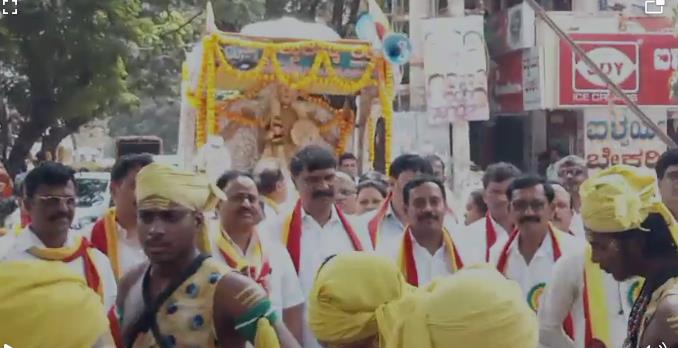 ರಾಜಗೋಪಾಲ ನಗರದ ಶನೇಶ್ವರ ಸ್ವಾಮಿ ದೇವಸ್ಥಾನನಿಂದ ನಾಡ ಪ್ರಭು ಕೆಂಪೆಗೌಡರ ಪುತ್ಥಳಿಯನ್ನು ಮುತ್ತಿನ ಪಲ್ಲಕ್ಕಿ ಮೂಲಕ ರಾಜಗೋಪಾಲನಗರ ಮುಖ್ಯ, ಪೀಣ್ಯ 2ನೇಹಂತ ರಾಮಯ್ಯ ಬಡಾವಣೆ ಡೊಳ್ಳು ಕುಣಿತ ವಿವಿಧ ಕಲಾತಂಡಗಳೊಂದಿಗೆ ಕೆಂಪೇಗೌಡ ಬಡಾವಣೆಯ ಕಾರ್ಯ ಕ್ರಮದ ವೇದಿಕೆಗೆ ತಲುಪಿತು.