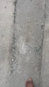 ಕಳಪೆ ಕಾಮಗಾರಿ ಮೂಲಕ 6 ಇಂಚು ಕಾಂಕ್ರೀಟ್ ಬದಲು 2 ಇಂಚು ಹಾಕಿ ರೋಡಿನ ಚರೆಂಡಿ ಮುಚ್ಚಿರುವುದು