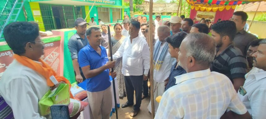 ಪಟ್ಟಣದ ತಾಲ್ಲೂಕು ಪಂಚಾಯ್ತಿ ಆವರಣದಲ್ಲಿ ಕೃಷಿ ಇಲಾಖೆ ವತಿಯಿಂದ ಆಯೋಜಿಸಿದ್ದ ಮುಂಗಾರು ಹಂಗಾಮಿನ ಬೀಜ ವಿತರಣೆ, ಸಸ್ಯ ಸಂರಕ್ಷಣಾ ಯೋಜನೆಯಡಿ ಬೀಜೋಪಚಾರ ಆಂದೋಲನ, ಕೀಟನಾಶಕಗಳ ಸುರಕ್ಷತಾ ಬಳಕೆ ಅರಿವು ಮತ್ತು ಕೃಷಿ ಪರಿಕರ ವಿತರಣಾ ಕಾರ್ಯಕ್ರಮದ ಉದ್ಘಾಟಿಸಿ ಮಾತನಾಡಿದ ಅವರು, ಸರ್ಕಾರ ಕೃಷಿ ಇಲಾಖೆ ಮೂಲಕ ರೈತರಿಗೆ ಬೇಕಾದ ಅಗತ್ಯ ಕೃಷಿ ಪರಿಕರಗಳು ಹಾಗೂ ಸಲಕರಣೆಗಳನ್ನು ಸಬ್ಸಿಡಿ ದರದಲ್ಲಿ ವಿತರಿಸುತ್ತಿದೆ. ಇದಲ್ಲದೆ ಕೃಷಿ ವಿಜ್ಞಾನಿಗಳಿಂದ ಆಗಿಂದಾಗ್ಗೆ ಅಗತ್ಯ ಆಧುನಿಕ ಕೃಷಿ ಪದ್ದತಿಗಳ ಬಗ್ಗೆ ಮಾಹಿತಿಯನ್ನೂ ಸಹ ನೀಡುತ್ತಿದೆ. ರೈತರು ಇದರ ಸದುಪಯೋಗಪಡಿಸಿಕೊಳ್ಳಬೇಕು. ಇಲಾಖೆಯ ಸವಲತ್ತುಗಳನ್ನು ಬಳಸಿಕೊಂಡು ಉತ್ತಮ ರೀತಿಯಲ್ಲಿ ಲಾಭದಾಯಕ ಕೃಷಿಗೆ ಒತ್ತು ನೀಡಿ ವ್ಯವಸಾಯ ಮಾಡುವ ಮೂಲಕ ತಮ್ಮ ಆರ್ಥಿಕ ಪರಿಸ್ಥಿತಿಯನ್ನು ಸುಧಾರಿಸಿಕೊಳ್ಳಬಹುದಾಗಿದೆ ಎಂದರು.
