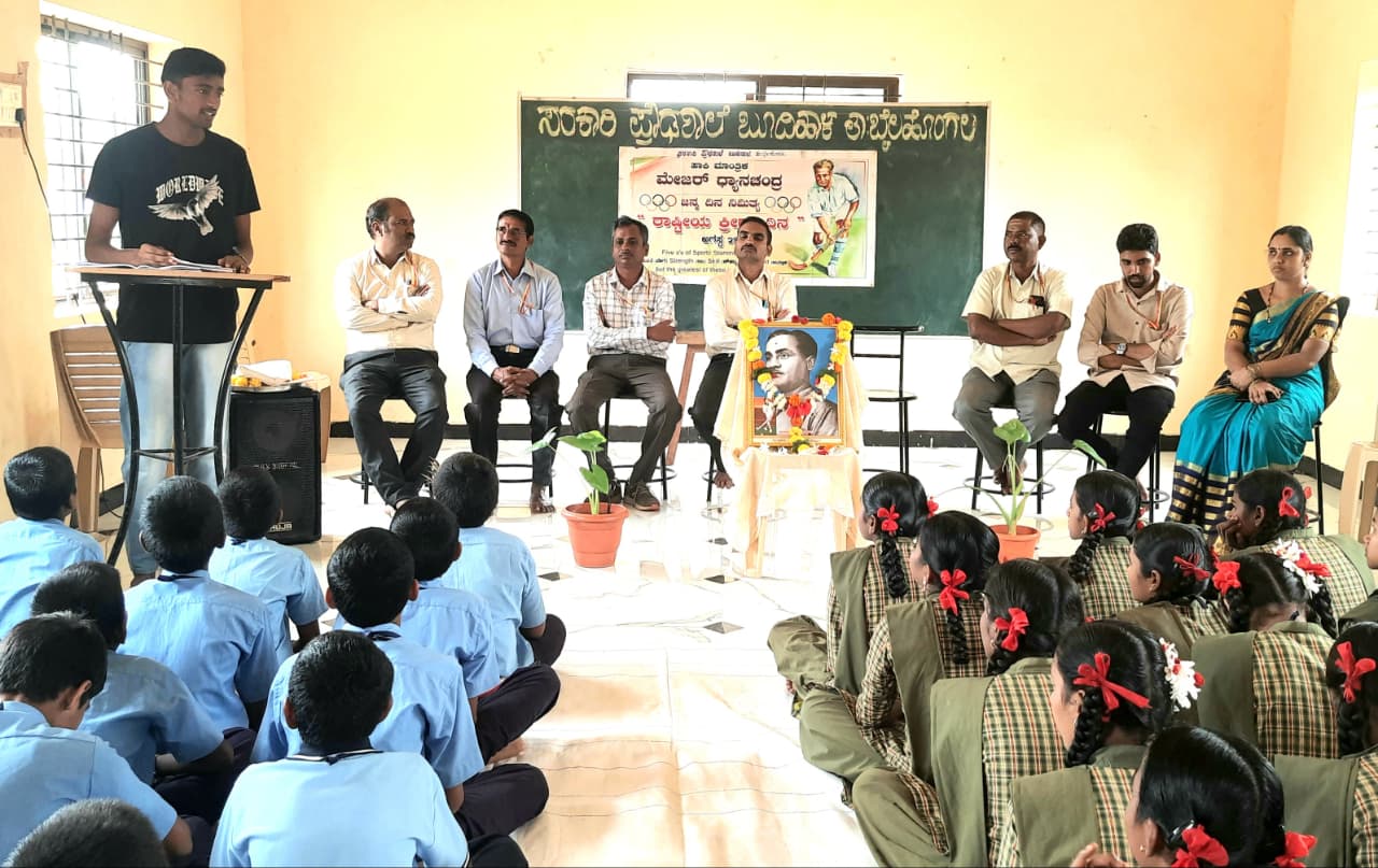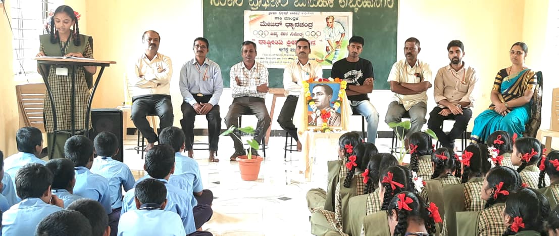 ದೈಹಿಕ ಶಿಕ್ಷಣ ಶಿಕ್ಷಕರಾದ ಪಿ.ಎಸ್. ಗುರುನಗೌಡರ ಪ್ರಾಸ್ತಾವಿಕವಾಗಿ ಮಾತನಾಡಿ ನಿತ್ಯ ಯೋಗ, ಧ್ಯಾನದಿಂದ ವಿದ್ಯಾರ್ಥಿಗಳ ಮಾನಸಿಕ ಮತ್ತು ದೈಹಿಕ ಆರೋಗ್ಯ ಉತ್ತಮವಾಗುತ್ತದೆ ಎಂದರು. ಸಮತೋಲಿತ ಆಹಾರ, ಉತ್ತಮ ನಿದ್ದೆ ಕ್ರಿಯಾಶೀಲತೆಯನ್ನು ಹೆಚ್ಚಿಸುತ್ತದೆ ಎಂದು ಅವರು ಅಭಿಪ್ರಾಯಪಟ್ಟರು. ಕಾರ್ಯಕ್ರಮದ ಅಧ್ಯಕ್ಷತೆಯನ್ನು ವಹಿಸಿದ ಮುಖ್ಯಶಿಕ್ಷಕರಾದ ಎನ್.ಆರ್.ಠಕ್ಕಾಯಿ ಮಾತನಾಡಿ ಮೇಜರ್ ಧ್ಯಾನಚಂದ್ ಅವರು ಓಲಂಪಿಕ್ಸದಲ್ಲಿ ಮಾಡಿದ ಸಾಧನೆ ಭಾರತೀಯರಾದ ನಮ್ಮೆಲ್ಲರಿಗೂ ಅತ್ಯಂತ ಹೆಮ್ಮೆಯ ವಿಷಯ ಎಂದರು. ಕ್ರೀಡಾಸಾಧಕರ ಜೀವನ ವಿದ್ಯಾರ್ಥಿಗಳಿಗೆ ಪ್ರೇರಣೆಯಾಗಲಿ ಎಂದು ಅವರು ಹೇಳಿದರು.