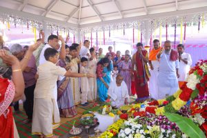 ಬಾಳೆ ಎಲೆಯಲ್ಲಿ ಪ್ರಸಾದದ ವ್ಯವಸ್ಥೆ
