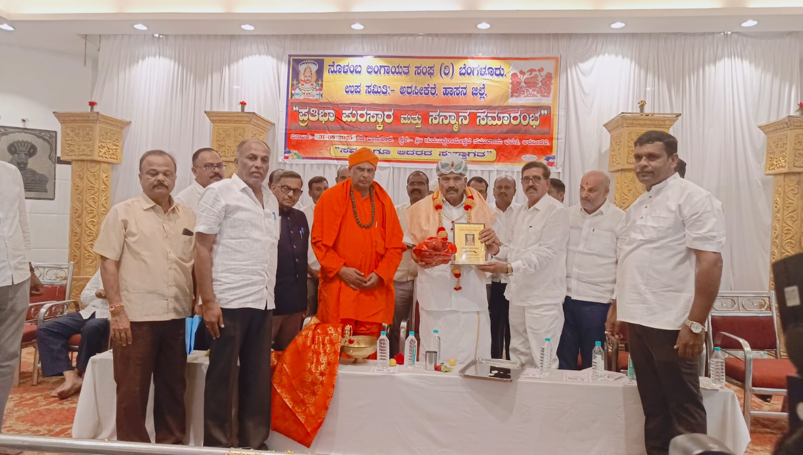 ಅರಸೀಕೆರೆ: ಕರ್ನಾಟಕ ಗೃಹ ಮಂಡಳಿಯ ಅಧ್ಯಕ್ಷರು ಹಾಗೂ ಅರಸೀಕೆರೆ ಶಾಸಕರಾದ ಕೆ ಎಂ ಶಿವಲಿಂಗೇಗೌಡರು ಇಂದು ಅರಸೀಕೆರೆ ನಗರದ ಗುರು ಸಿದ್ದರಾಮೇಶ್ವರ ಸಮುದಾಯ ಭವನದಲ್ಲಿ ನೊಳಂಬ ಲಿಂಗಾಯತ ಸಂಘ (ರಿ) ಬೆಂಗಳೂರು, ಉಪ ಸಮಿತಿ ಅರಸೀಕೆರೆ ಹಾಸನ ಜಿಲ್ಲೆ ಇವರ ವತಿಯಿಂದ ಆಯೋಜನೆ ಮಾಡಲಾಗಿದ್ದ ಪ್ರತಿಭಾ ಪುರಸ್ಕಾರ ಮತ್ತು ಸನ್ಮಾನ ಸಮಾರಂಭ ಕಾರ್ಯಕ್ರಮದಲ್ಲಿ ಶ್ರೀಮದ್ ರಂಭಾಪುರಿವೀರಸಿಂಹಾಸನಾಧೀಶ್ವರ 1008 ಜಗದ್ಗುರು ಶ್ರೀ ಜ್ಞಾನಪ್ರಭು ಸಿದ್ದರಾಮದೇಶಕೇಂದ್ರ ಮಹಾಸ್ವಾಮಿಜಿಯವರು ಯಳನಾಡು ಮಹಾಸಂಸ್ಥಾನ ಅರಸೀಕೆರೆ-ಕಡೂರು ಇವರ ಸಾನಿದ್ಯದಲ್ಲಿ ಭಾಗವಹಿಸಿ ಕಾರ್ಯಕ್ರಮವನ್ನು ಉದ್ಘಾಟನೆ ಮಾಡಿದರು.