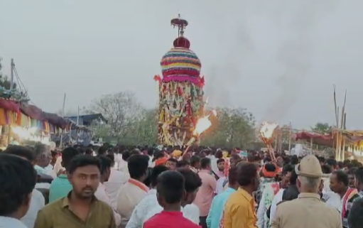 ಭಕ್ತರು ವಿವಿಧ ವಾದ್ಯಗಳ ಮೂಲಕ ಬೃಹತ್ ಹೂವಿನ ಹಾರಗಳನ್ನು ಮೆರವಣಿಗೆ ಮೂಲಕ ತಂದು ರಥಕ್ಕೆ ಅರ್ಪಿಸುತ್ತಿರುವ ದೃಶ್ಯ ಕಂಡುಬಂದಿತು.