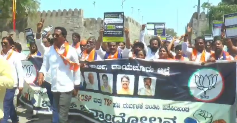 ರಾಯಚೂರ : ಭಾರತೀಯ ಜನತಾ ಪಕ್ಷ ಕರ್ನಾಟಕ ರಾಯಚೂರು ಜಿಲ್ಲಾಧಿಕಾರಿ ಮೂಲಕ ಕರ್ನಾಟಕ ಸರ್ಕಾರದ ಮುಖ್ಯಮಂತಿಗಳಿಗೆ ಸಲ್ಲಿಸುತ್ತಿರುವ ಹಕ್ಕೊತ್ತಾಯ 2023ರಲ್ಲಿ SCSP ಯಿಂದ 7713.15 ಸಾವಿರ ಕೋಟಿ ರೂ ಮತ್ತು TSP ಯಿಂದ 3430.85 ಸಾವಿರ ಕೋಟಿರೂ ಒಟ್ಟಾರೆ 11144.00 ಸಾವಿರ ಕೋಟಿ ರೂಗಳನ್ನು ಗ್ಯಾರೆಂಟಿ ಯೋಜನೆಗಳ ಅನುಷ್ಠಾನಕ್ಕೆ ದುರ್ಬಳಕೆ ಮಾಡಿಕೊಂಡಿತು.