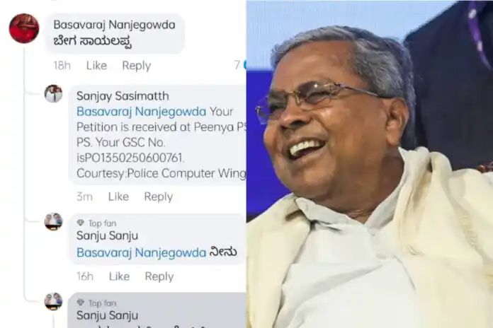 ಬೆಂಗಳೂರು : ಫೇಸ್‌ಬುಕ್‌ ನ ಪೋಸ್ಟ್‌ ನಲ್ಲಿ ಕಮೆಂಟ್‌ ಸೆಕ್ಷನ್‌ ನಲ್ಲಿ ಮುಖ್ಯಮಂತ್ರಿ ಸಿದ್ದರಾಮಯ್ಯ  ಸಾವು ಬಯಸಿದ್ದ ಕಿಡಿಗೇಡಿಗಳ ವಿರುದ್ಧ ದೂರು ದಾಖಲಿಸಲಾಗಿದೆ.