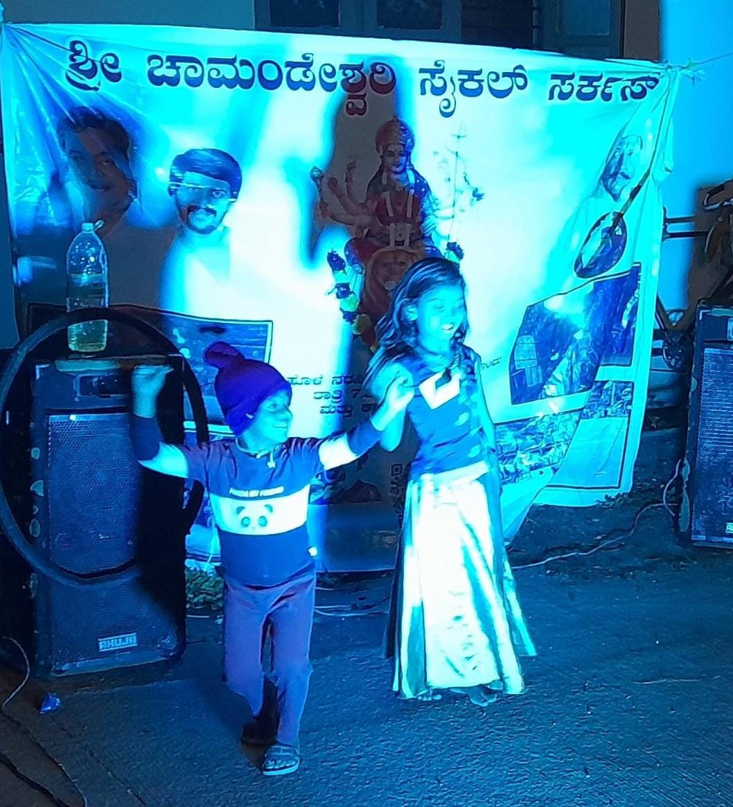 ಇಷ್ಟೆಲ್ಲಾ ಆದ ಮೇಲೆ ಸರ್ಕಸ್ ಪ್ರಾರಂಭವಾಯಿತು. ತಂಡದ ಪುರುಷ ಕಲಾವಿದರು ಬ್ರೇಕಿಲ್ಲದ, ಬೆಲ್ ಇಲ್ಲದ ಸೈಕಲ್ ಹತ್ತಿ ತುಳಿಯುತ್ತಾ ಮೂರು ನೀರು ತುಂಬಿದ ಬಿಂದಿಗೆಗಳನ್ನು ಎರಡನ್ನು ಕೈಯಲ್ಲಿ, ಒಂದು ಬಾಯಲ್ಲಿ ಹಿಡಿದು ಸೈಕಲ್ ಸವಾರಿ ಮಾಡಿದರು. ನಾಲ್ಕು ಪುಟ್ಟ ಮಕ್ಕಳನ್ನು ಚೌಕಾಕಾರದಲ್ಲಿ ಮಲಗಿಸಿ ಅವರ ಮಧ್ಯೆ ಸೈಕಲ್ ಹಿಂಬದಿ ಚಕ್ರ, ಅವರ ಆಚೆಗೆ ಒಂದು ಚಕ್ರ ಬರುವಂತೆ ಸೈಕಲ್ ತುಳಿದು ಆಶ್ಚರ್ಯ ಮೂಡಿಸಿದರು. ಬಹುಮುಖ್ಯವಾಗಿ ಅದೇ ಬ್ರೇಕಿಲ್ಲದ ಸೈಕಲಿನಲ್ಲಿ ಟೈರೊಂದಕ್ಕೆ ಬೆಂಕಿ ಹಚ್ಚಿ ಹಿಡಿದು ಸೈಕಲ್ ತುಳಿಯುತ್ತಲೇ ಸೈಕಲ್ ಚಕ್ರದ ಕೆಳಗಿನಿಂದ ಟೈರ್ ತೆಗೆಯುವ ಪ್ರದರ್ಶನವಂತೂ ನಾಗರೀಕರನ್ನು ಬಿಟ್ಟಕಣ್ಣು ಬಿಟ್ಟಂತೆ ನೋಡುವಂತೆ ಮಾಡಿದರು. ಇನ್ನೂ ಹತ್ತಾರು ಕಲಾ ಪ್ರದರ್ಶನವನ್ನು ಸರ್ಕಸ್ ತಂಡ ನೀಡಿತು.