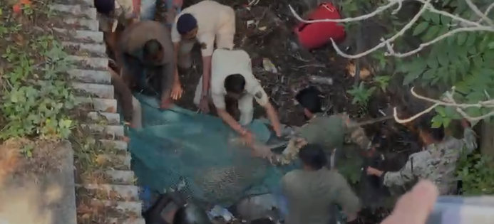 —ಅರಣ್ಯ ಇಲಾಖೆ ಹಾಗೂ ಪೊಲೀಸರಿಂದ 90 ನಿಮಿಷಗಳ ಅವಧಿಯ ನಂತರ ಬಲೆಗೆ ಬಿದ್ದ ಹುಲಿ