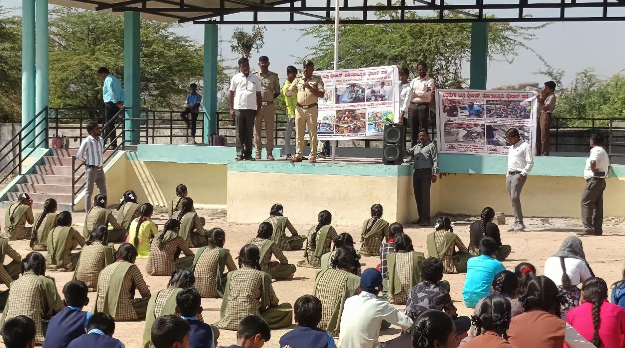 ಪಟ್ಟಣದ ಜೂನಿಯರ್ ಕಾಲೇಜ್ ಆವರಣದಲ್ಲಿ ಸಂಚಾರಿ ನಿಯಮಗಳ ಬಗ್ಗೆ ತಿಳಿಸಿದರು. ನಿಮ್ಮ ಸುತ್ತಮುತ್ತ ಪರಿಸರದಲ್ಲಿ ಕುಡಿದು ವಾಹನ ಚಾಲನೆ ಮಾಡಿದರೆ ಹೆಲ್ಮೆಟ್ ಇಲ್ಲದೆ ವಾಹನ ಚಾಲನೆ ಮಾಡಿದರೆ ಅಂತವರಿಗೆ ನೀವು ತಿಳಿ ಹೇಳಬೇಕು ಎಂದು ಮಕ್ಕಳಿಗೆ ತಿಳಿಸಿದರೆ. ಯಾವುದೇ ಕಾರಣಕ್ಕೂ ಹೆಲ್ಮೆಟ್ ಇಲ್ಲದೆ ವಾಹನ ಚಾಲನೆ ಮಾಡಿದರೆ ಕುಡಿದು ವಾಹನ ಚಾಲನೆ ಮಾಡಿದರೆ ಅಂತವರಿಗೆ ಪೊಲೀಸರಿಂದ ದಂಡ ವಿಧಿಸಲಾಗುವುದು.
